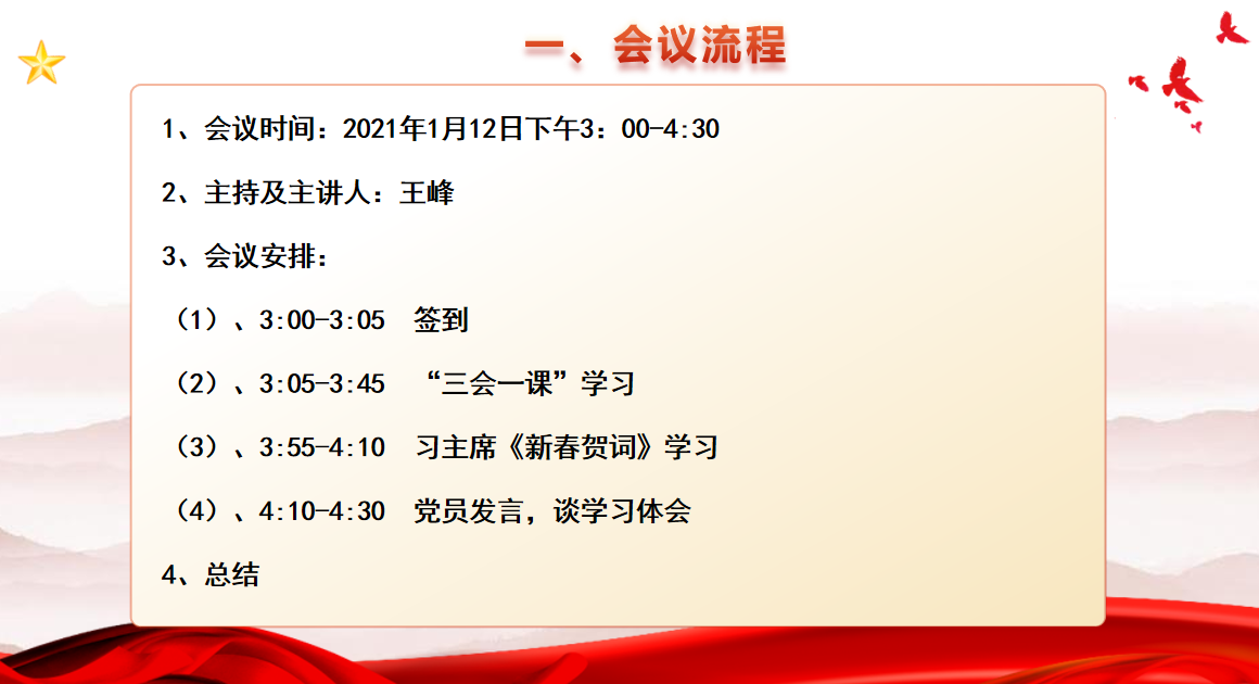 2021年1月支部大会-“三会一课”学习