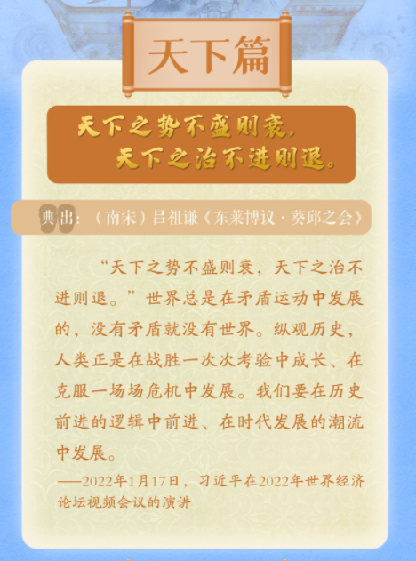 在2022年系列重要讲话中,习近平总书记引经据典,给人们以深刻的思想启迪和巨大的精神鼓舞,彰显了大国领袖持经达变的大视野、大气魄、大胸怀,也折射出总书记对于治国理政的深邃思考和宏大韬略。央视网《天天学习》特别梳理2022年总书记十大用典,与您一起学习回顾。